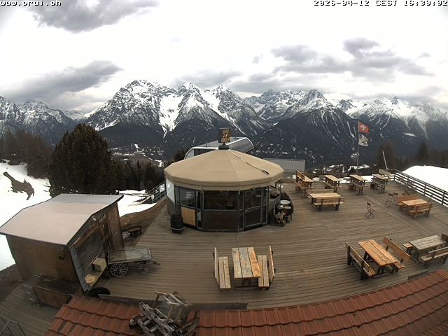 Archiviertes Webcam Bild: Scuol: Bergrestaurant Prümaran Prui am 12.04.2026 um 16:13 Uhr 16:00