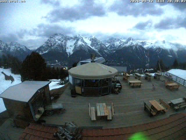 Archiviertes Webcam Bild: Scuol: Bergrestaurant Prümaran Prui am 12.04.2026 um 20:13 Uhr Aktuell