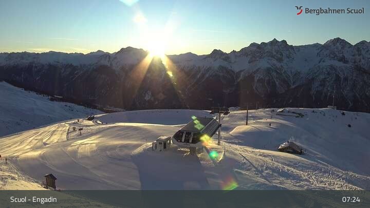 Archiviertes Webcam Bild: Scuol: Schlivera Blick vom Gipfel am 26 Feb 2026 um 07:52 Uhr 06:00