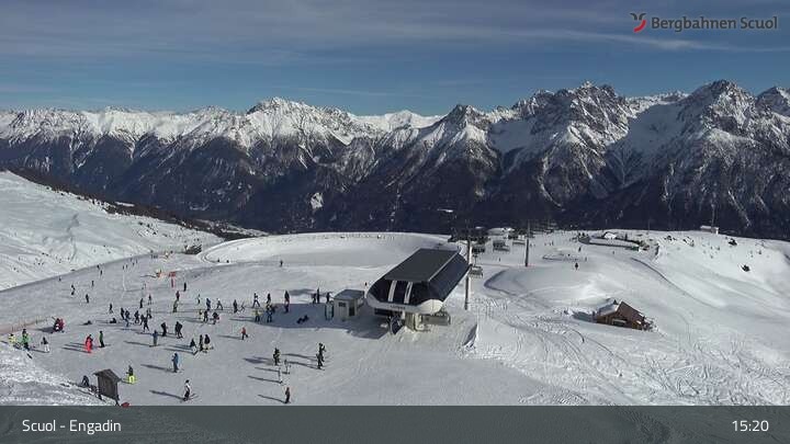 Archiviertes Webcam Bild: Scuol: Schlivera Blick vom Gipfel am 26 Feb 2026 um 15:52 Uhr Aktuell