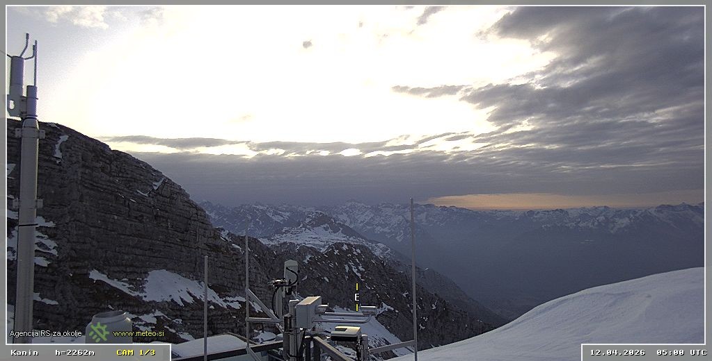 Archiviertes Webcam Bild: Skigebiet Sella Nevea - Bovec Kanin - Blick nach Osten am 12.04.2026 um 04:55 Uhr 04:00