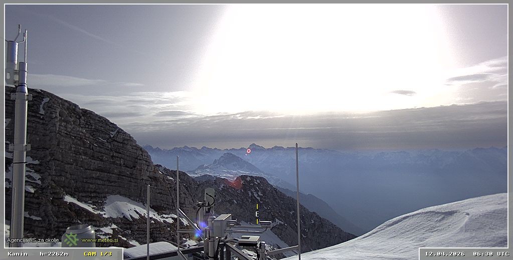 Archiviertes Webcam Bild: Skigebiet Sella Nevea - Bovec Kanin - Blick nach Osten am 12.04.2026 um 07:55 Uhr 07:00