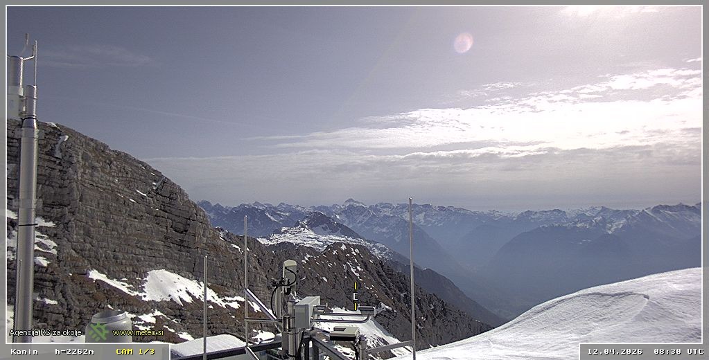 Archiviertes Webcam Bild: Skigebiet Sella Nevea - Bovec Kanin - Blick nach Osten am 12.04.2026 um 08:55 Uhr 08:00