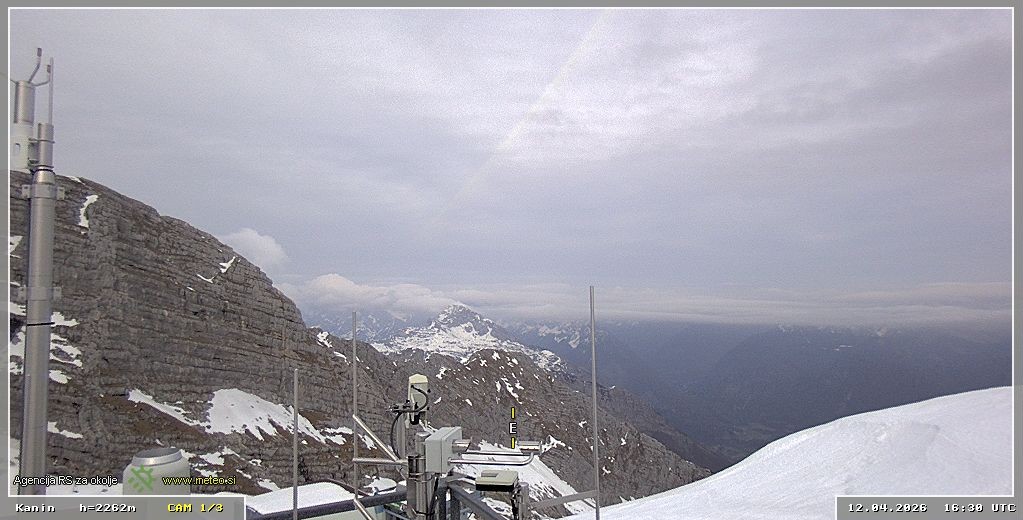 Archiviertes Webcam Bild: Skigebiet Sella Nevea - Bovec Kanin - Blick nach Osten am 12.04.2026 um 16:55 Uhr 16:00