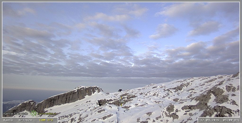 Archiviertes Webcam Bild: Skigebiet Sella Nevea - Bovec Kanin - Blick nach Südwesten am 12.04.2026 um 04:55 Uhr 04:00