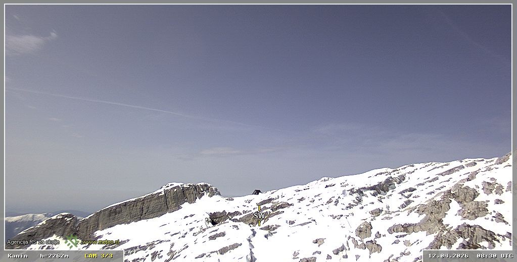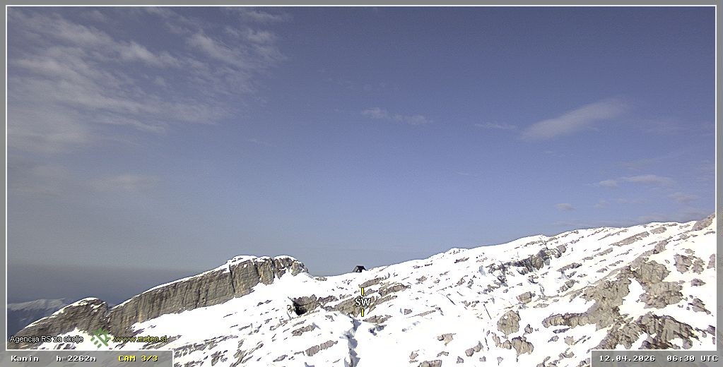 Archiviertes Webcam Bild: Skigebiet Sella Nevea - Bovec Kanin - Blick nach Südwesten am 12.04.2026 um 08:55 Uhr 08:00