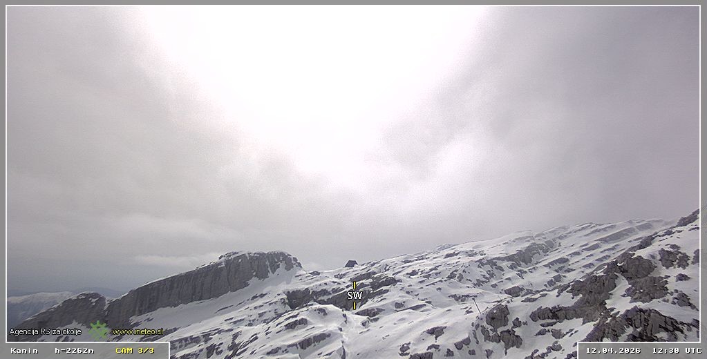 Archiviertes Webcam Bild: Skigebiet Sella Nevea - Bovec Kanin - Blick nach Südwesten am 12.04.2026 um 12:55 Uhr 12:00