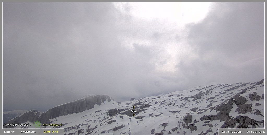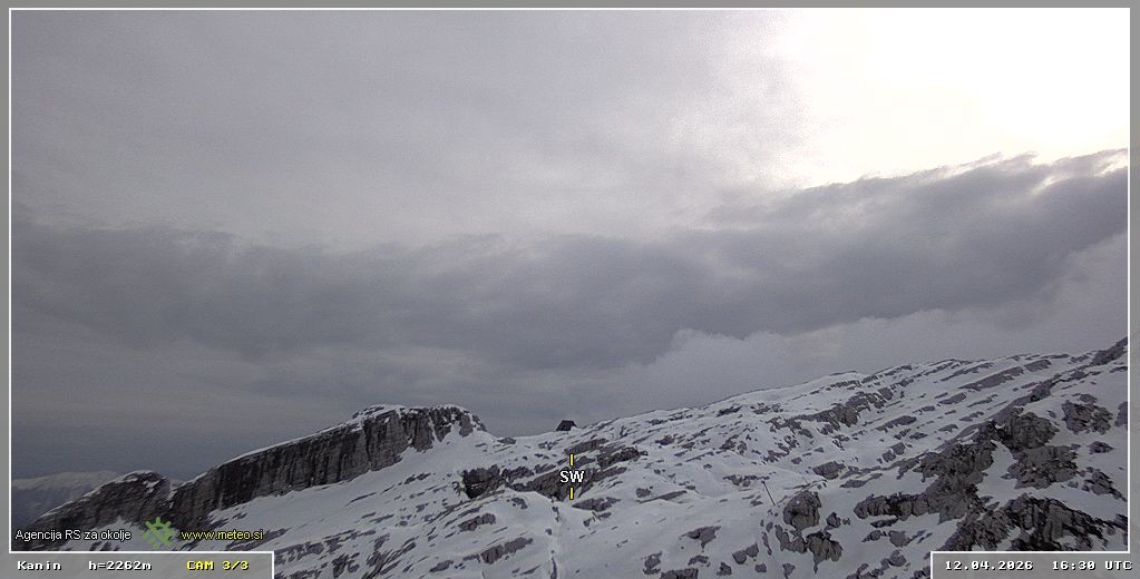 Archiviertes Webcam Bild: Skigebiet Sella Nevea - Bovec Kanin - Blick nach Südwesten am 12.04.2026 um 16:55 Uhr 16:00