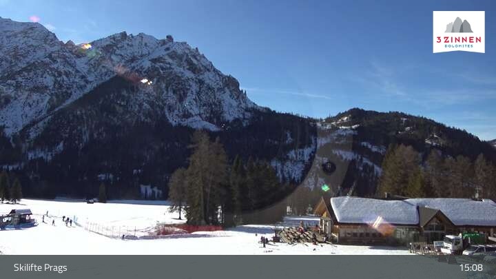 Webcam 3 Zinnen Dolomiten: Skilifte Prags, 1,428 m