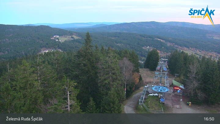 Blick auf die Bergstation des Sessellifts im tschechischen Skigebiet Špicák bei Železná Ruda.