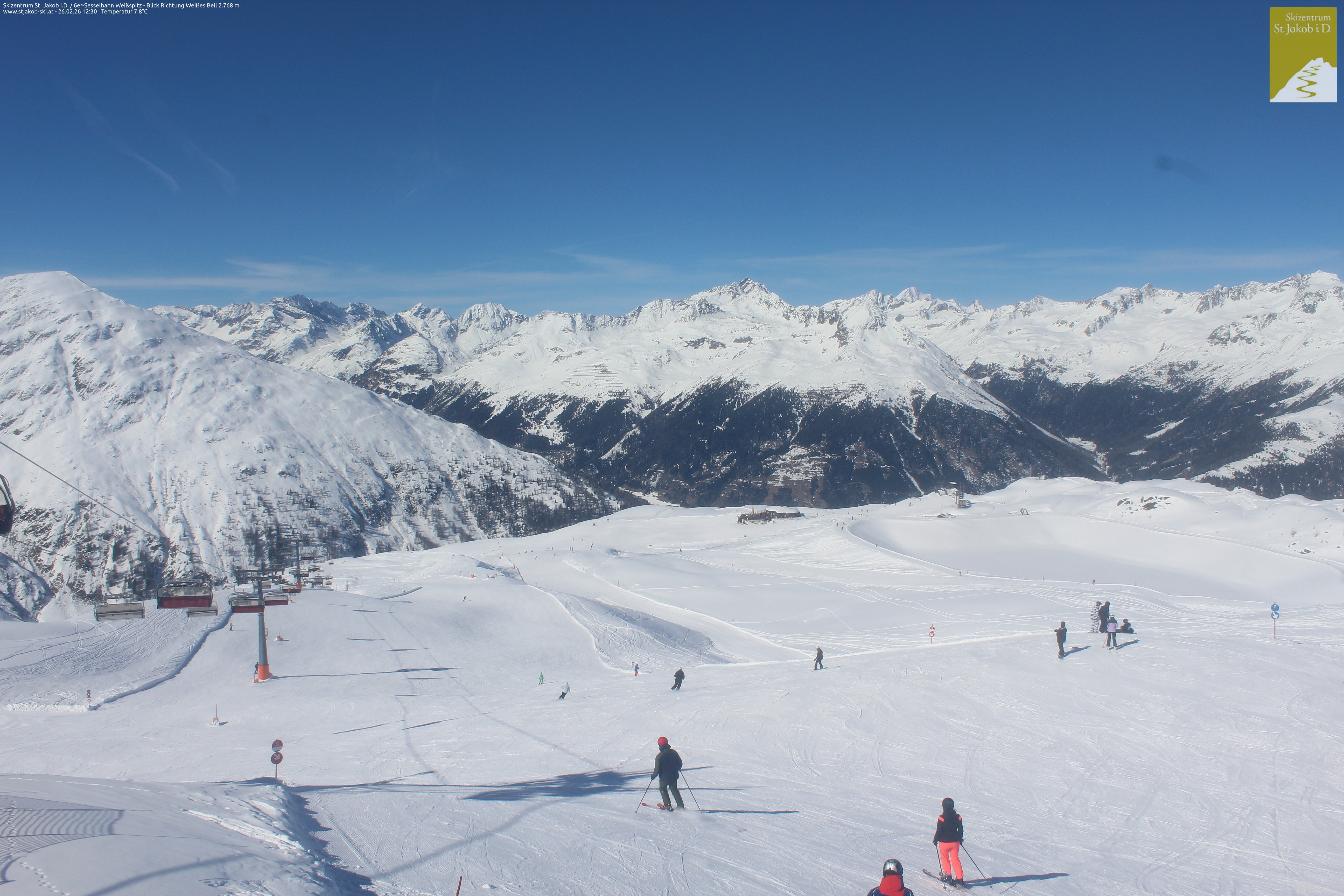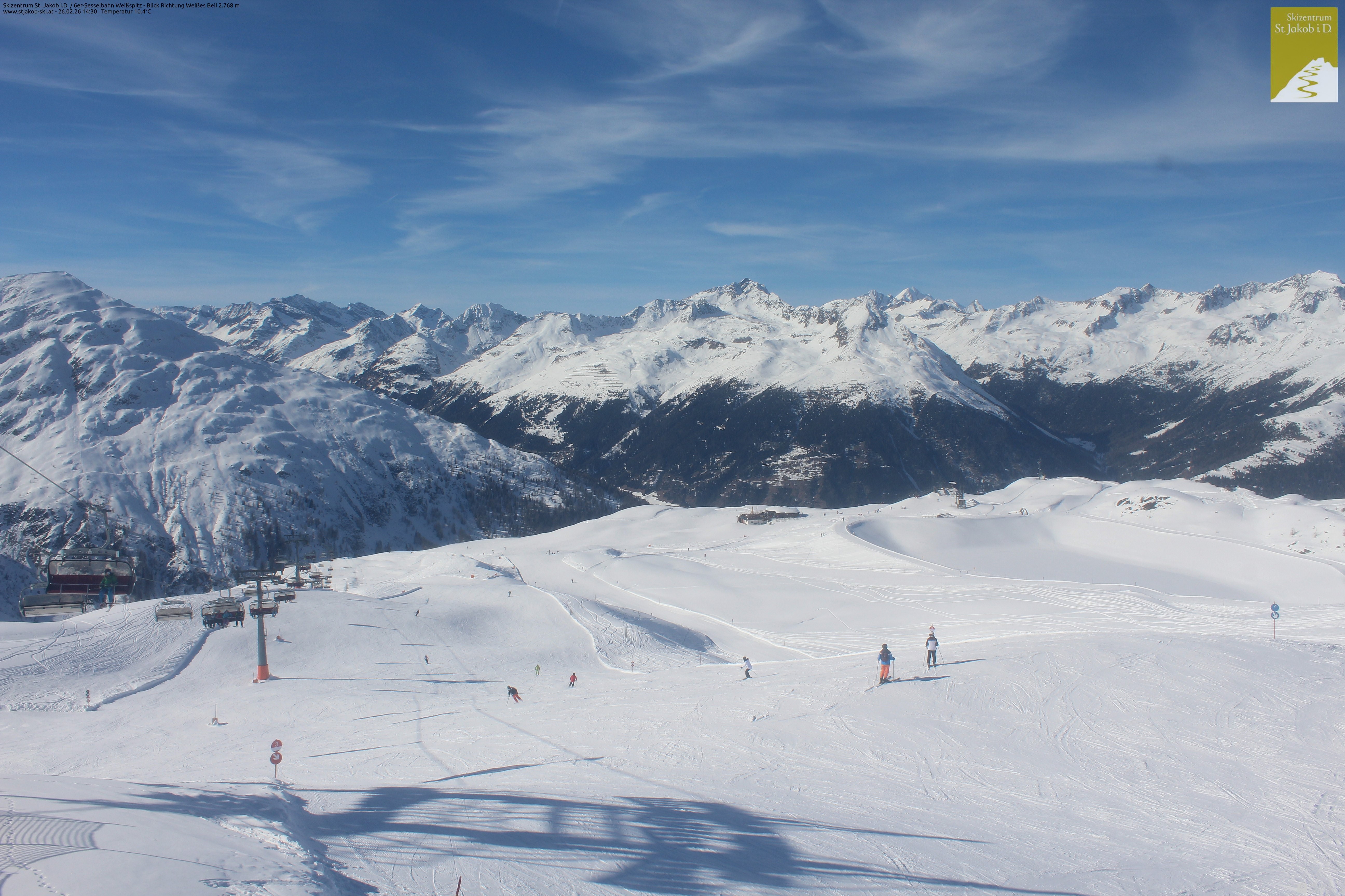 Archiviertes Webcam Bild: St. Jakob: 6er-Sesselbahn Weißspitz am 26 Feb 2026 um 12:10 Uhr 11:00