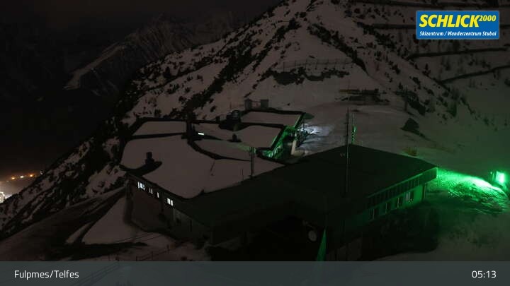 Die Webcam befindet sich auf dem Krinnenkopf, der Bergstation der Kreuzjochbahn, und zeigt den Rundumblick auf das Skigebiet Schlick 2000.