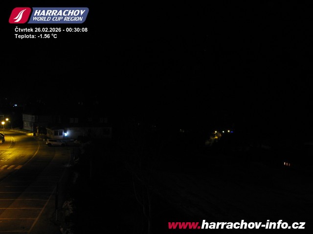 Archived webcam image showing ski-jumping hill Čerťák on 26 Feb 2026 at 02:45 01:00