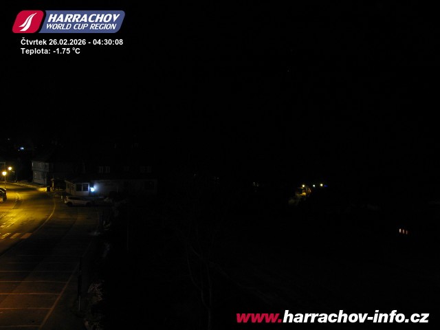 Archived webcam image showing ski-jumping hill Čerťák on 26 Feb 2026 at 04:45 03:00