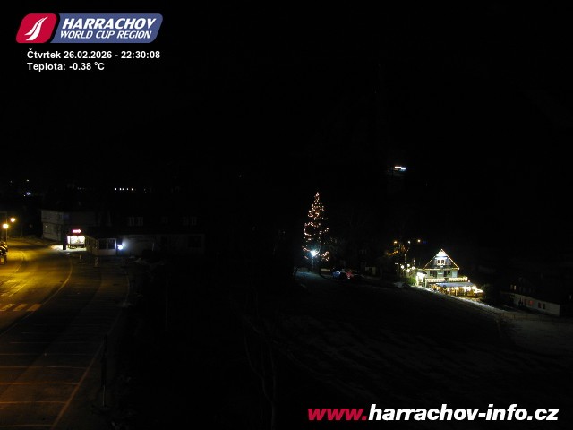 Archived webcam image showing ski-jumping hill Čerťák on 26 Feb 2026 at 00:45 23:00