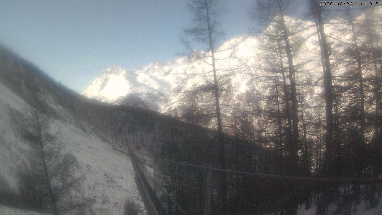 Archiviertes Webcam Bild: Grächen: Blick auf Charles Kuonen Hängebrücke am 26 Feb 2026 um 10:11 Uhr 09:00