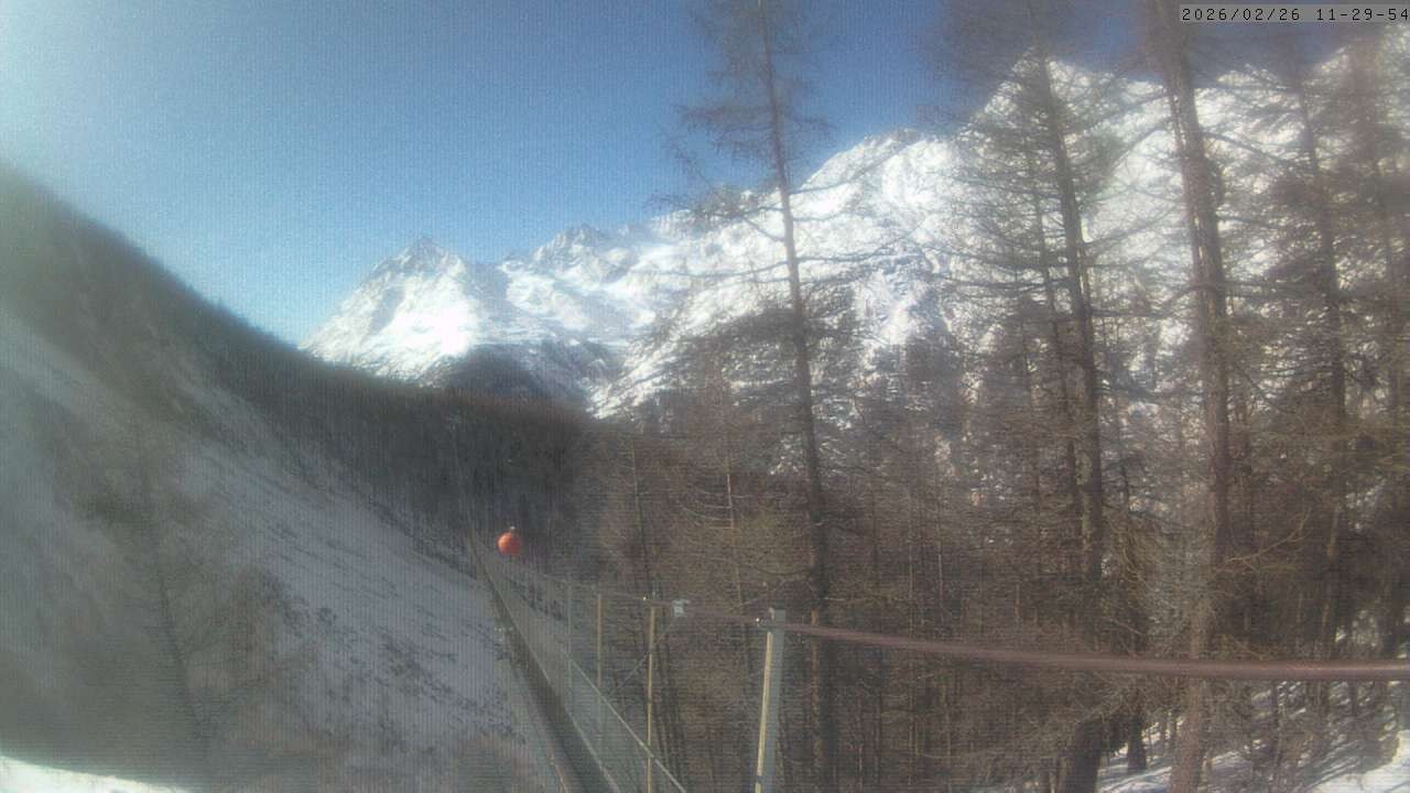 Archiviertes Webcam Bild: Grächen: Blick auf Charles Kuonen Hängebrücke am 26 Feb 2026 um 12:11 Uhr 11:00