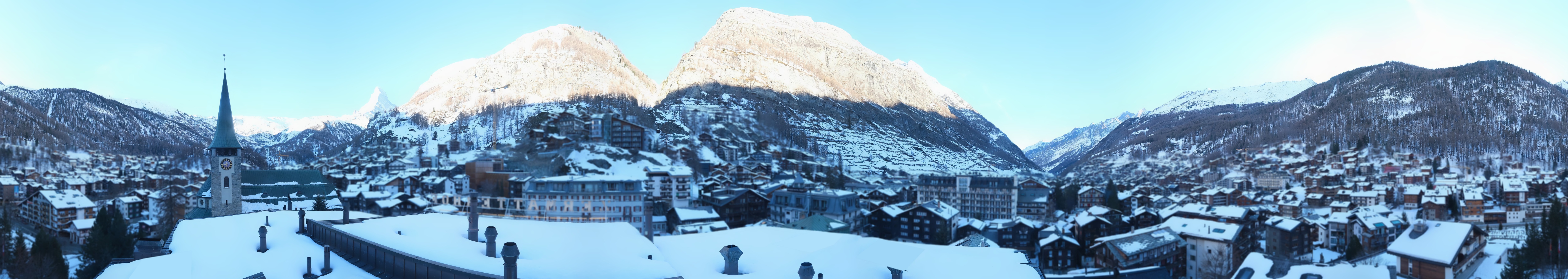 Archiviertes Webcam Bild: Zermatt: Panoramablick auf das Dorf am 26 Feb 2026 um 08:11 Uhr 07:00