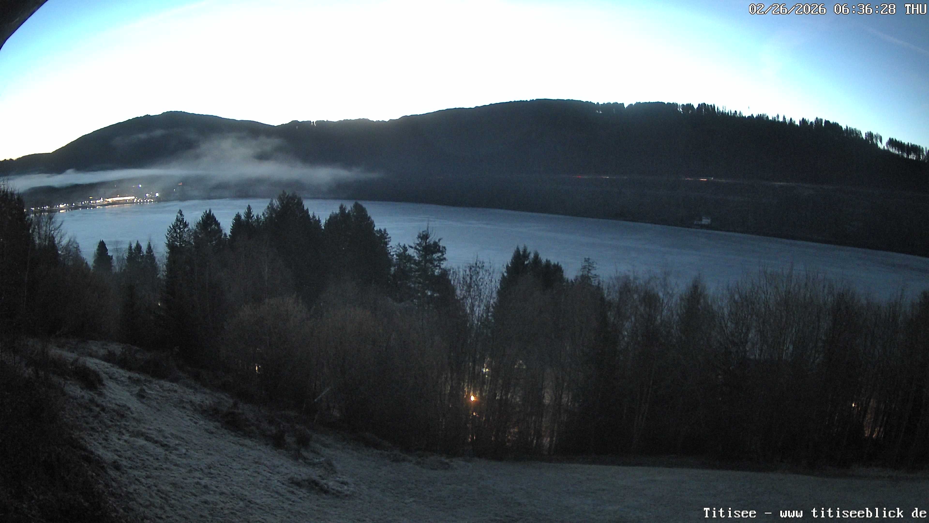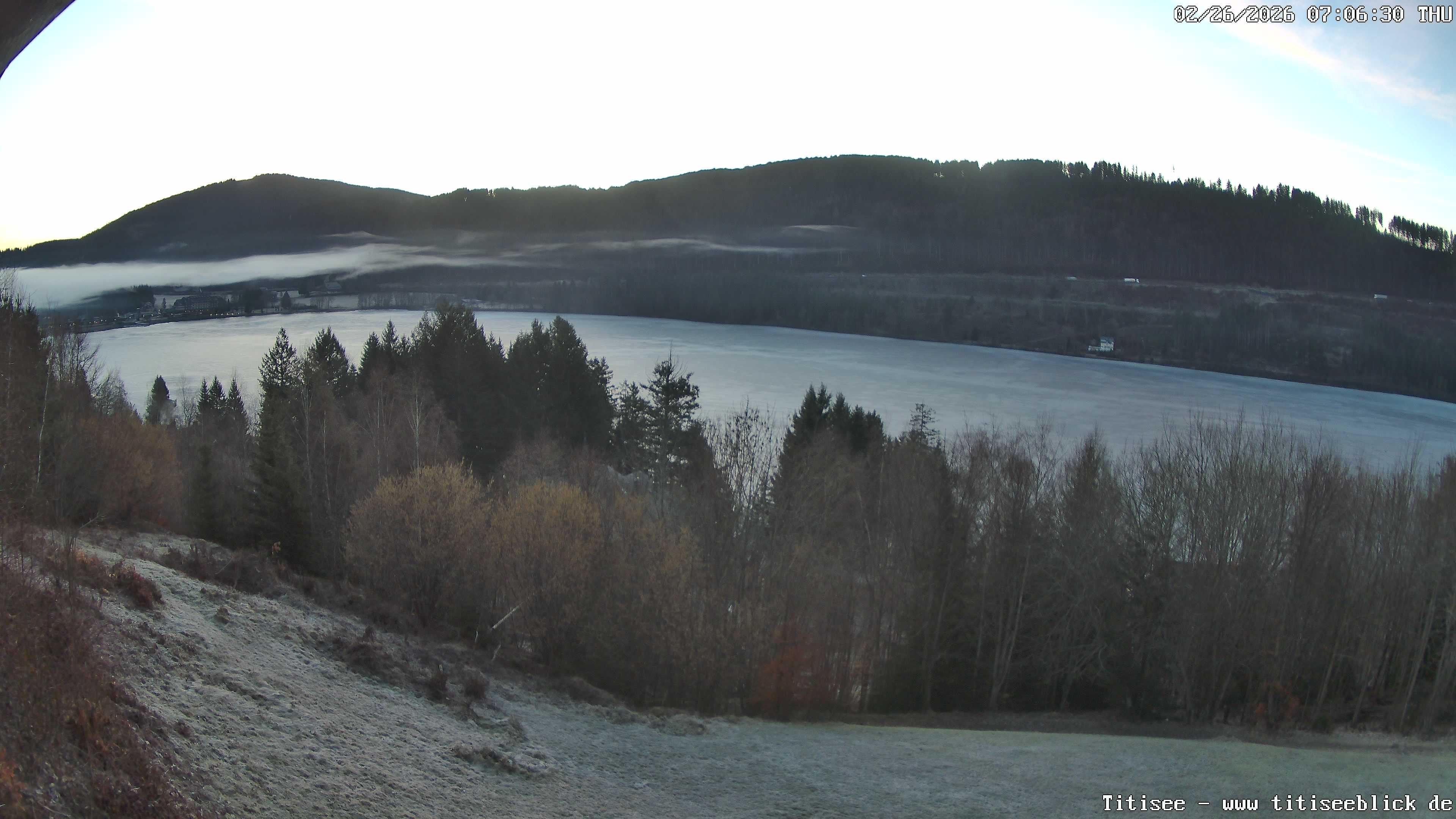 Archiviertes Webcam Bild: Blick auf den Titisee vom Westufer am 26 Feb 2026 um 06:52 Uhr 05:00