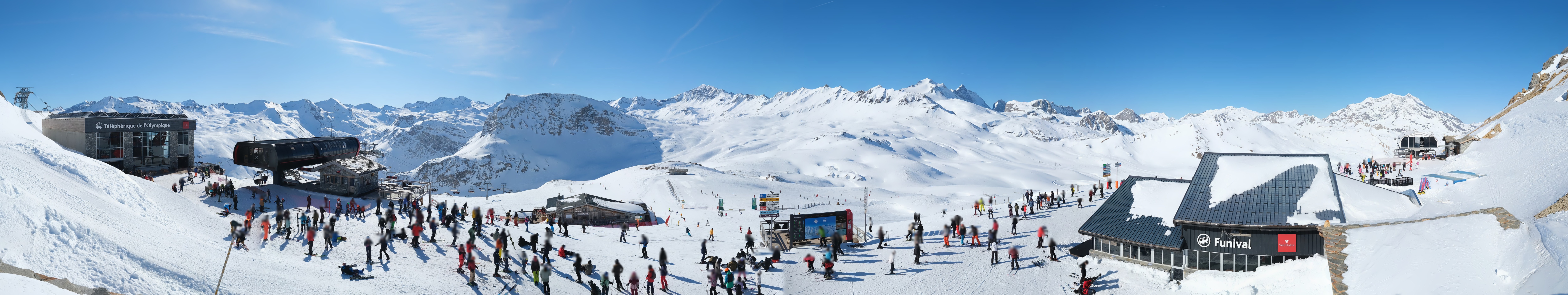 Zu sehen ist der Blick vom Gipfel des Rocher de Bellevarde im Skigebiet von Val d'Isère. 1992 Startpunkt der olympischen Abfahrt.