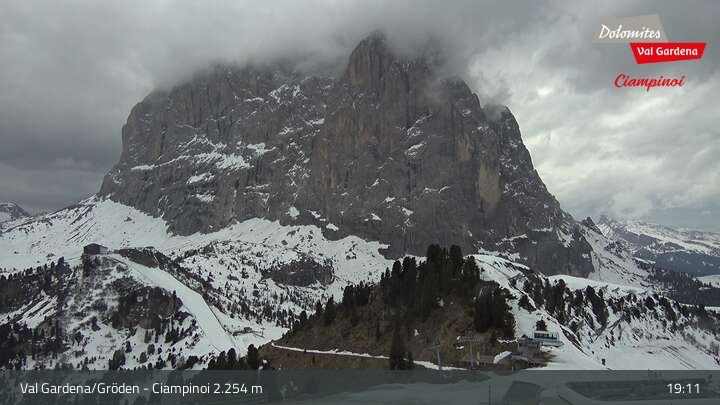 Archiviertes Webcam Bild: Gröden - Ciampinoi Bergstation am 12.04.2026 um 19:58 Uhr Aktuell