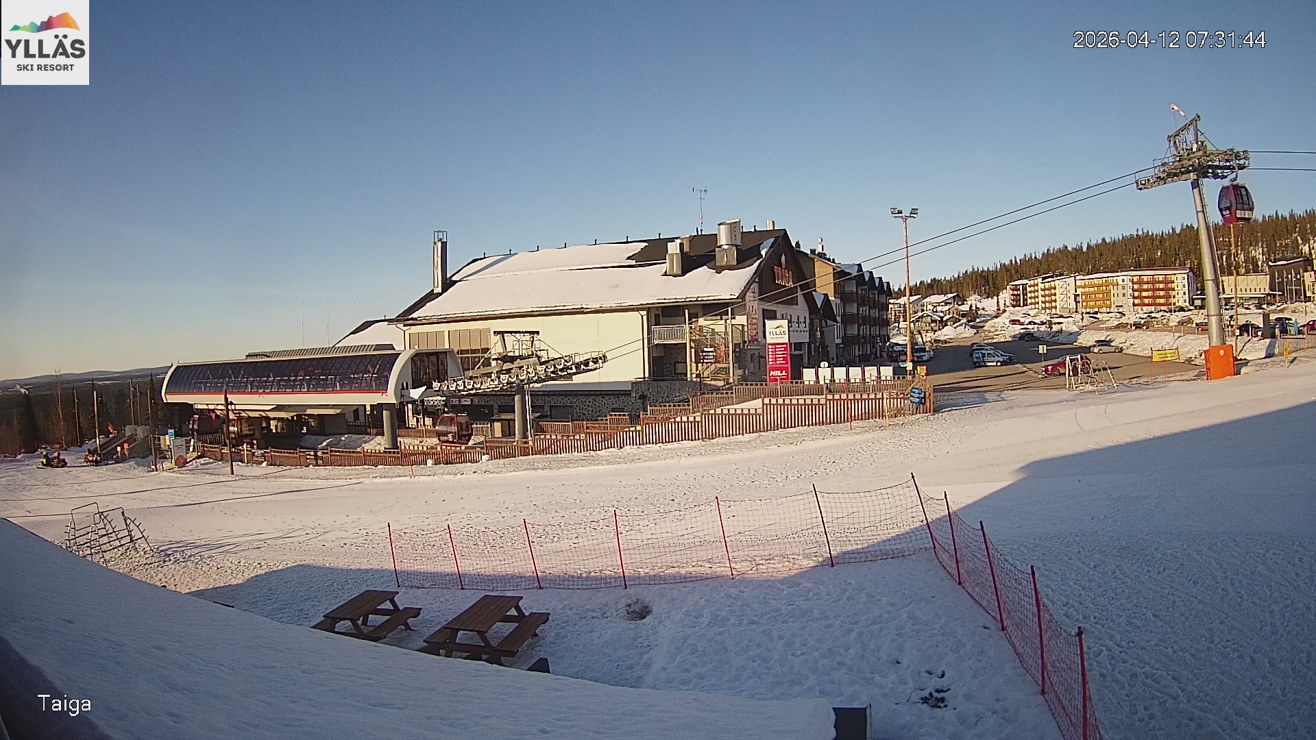 Archiviertes Webcam Bild: Ylläs: Gondelstation am Taiga Restaurant am 12.04.2026 um 06:56 Uhr 07:00