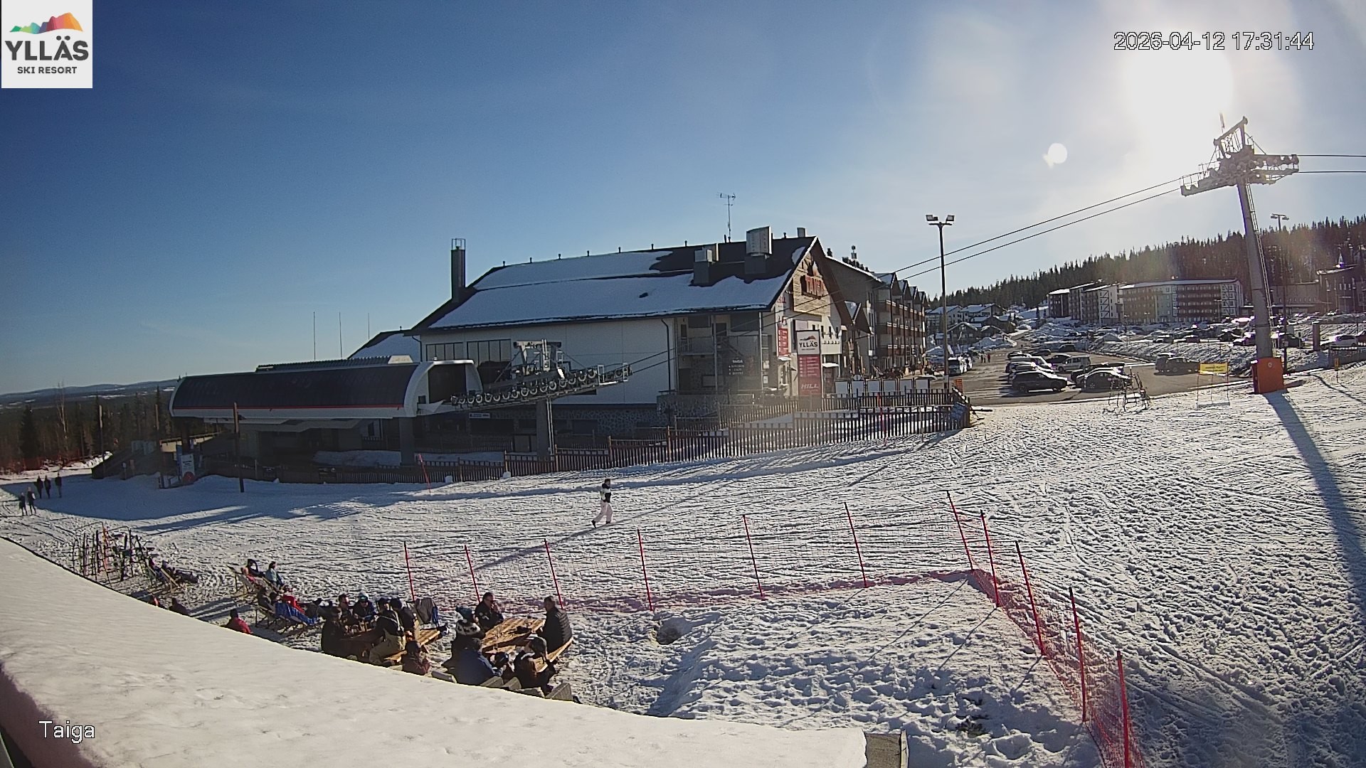 Archiviertes Webcam Bild: Ylläs: Gondelstation am Taiga Restaurant am 12.04.2026 um 16:56 Uhr 17:00