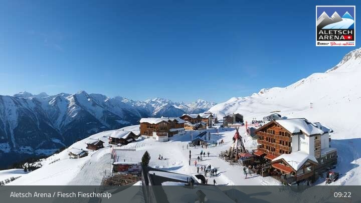 Archiviertes Webcam Bild: Aletsch Arena: Fiescheralp Dorf am 26 Feb 2026 um 09:10 Uhr 08:00