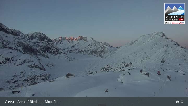 Archiviertes Webcam Bild: Aletsch Arena: Riederalp Moosfluh am 26 Feb 2026 um 05:10 Uhr 04:00