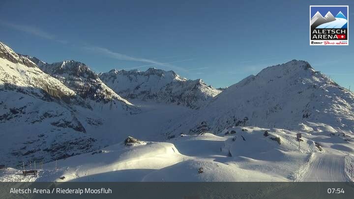 Archiviertes Webcam Bild: Aletsch Arena: Riederalp Moosfluh am 26 Feb 2026 um 08:10 Uhr 07:00