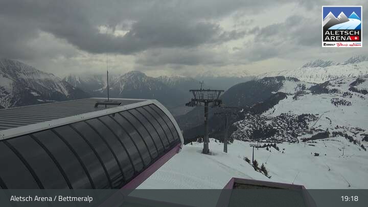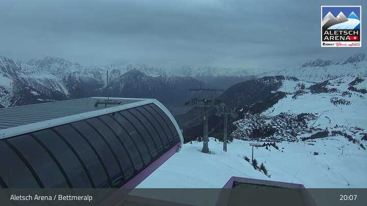Archiviertes Webcam Bild: Aletsch Arena: Bergstation Wurzenbord am 12.04.2026 um 19:50 Uhr Aktuell