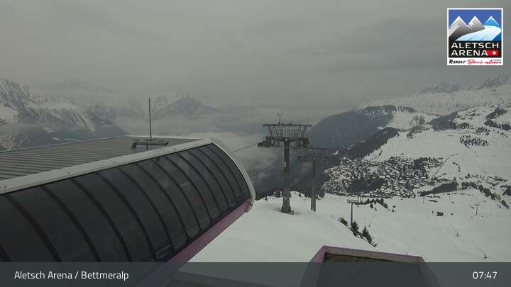 Archiviertes Webcam Bild: Aletsch Arena: Bergstation Wurzenbord am 12.04.2026 um 07:50 Uhr 07:00