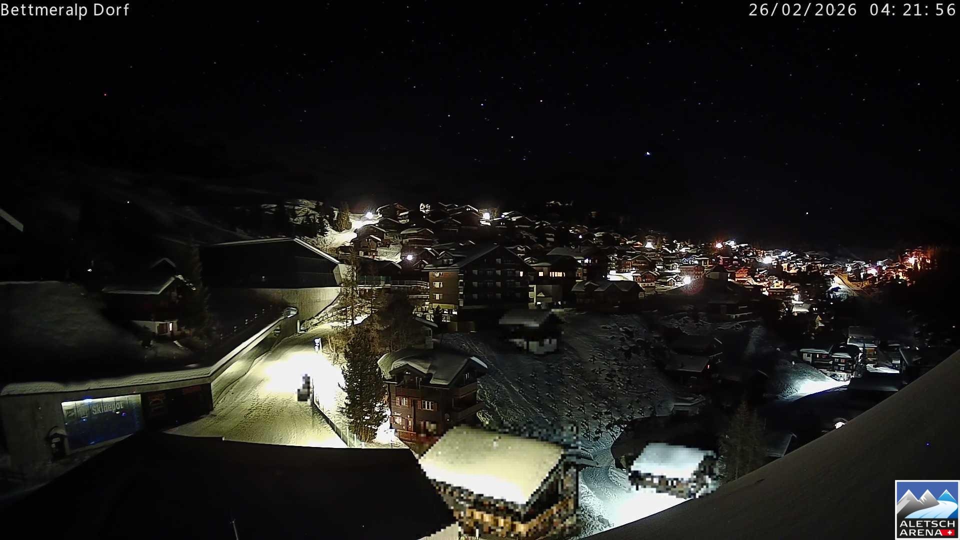 Archiviertes Webcam Bild: Aletsch Arena: Bettmeralp Dorf am 26 Feb 2026 um 04:08 Uhr 03:00