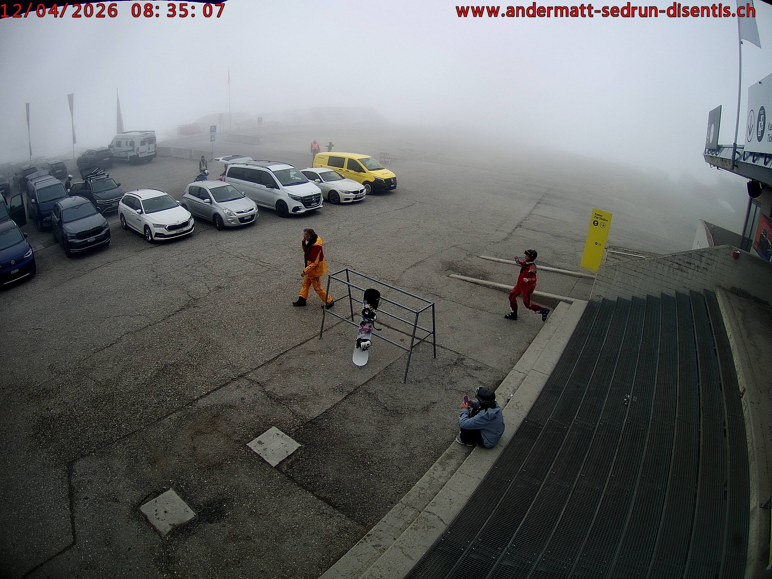 Archiviertes Webcam Bild: Andermatt: Parkplatz Gemsstockbahn am 12.04.2026 um 08:46 Uhr 08:00