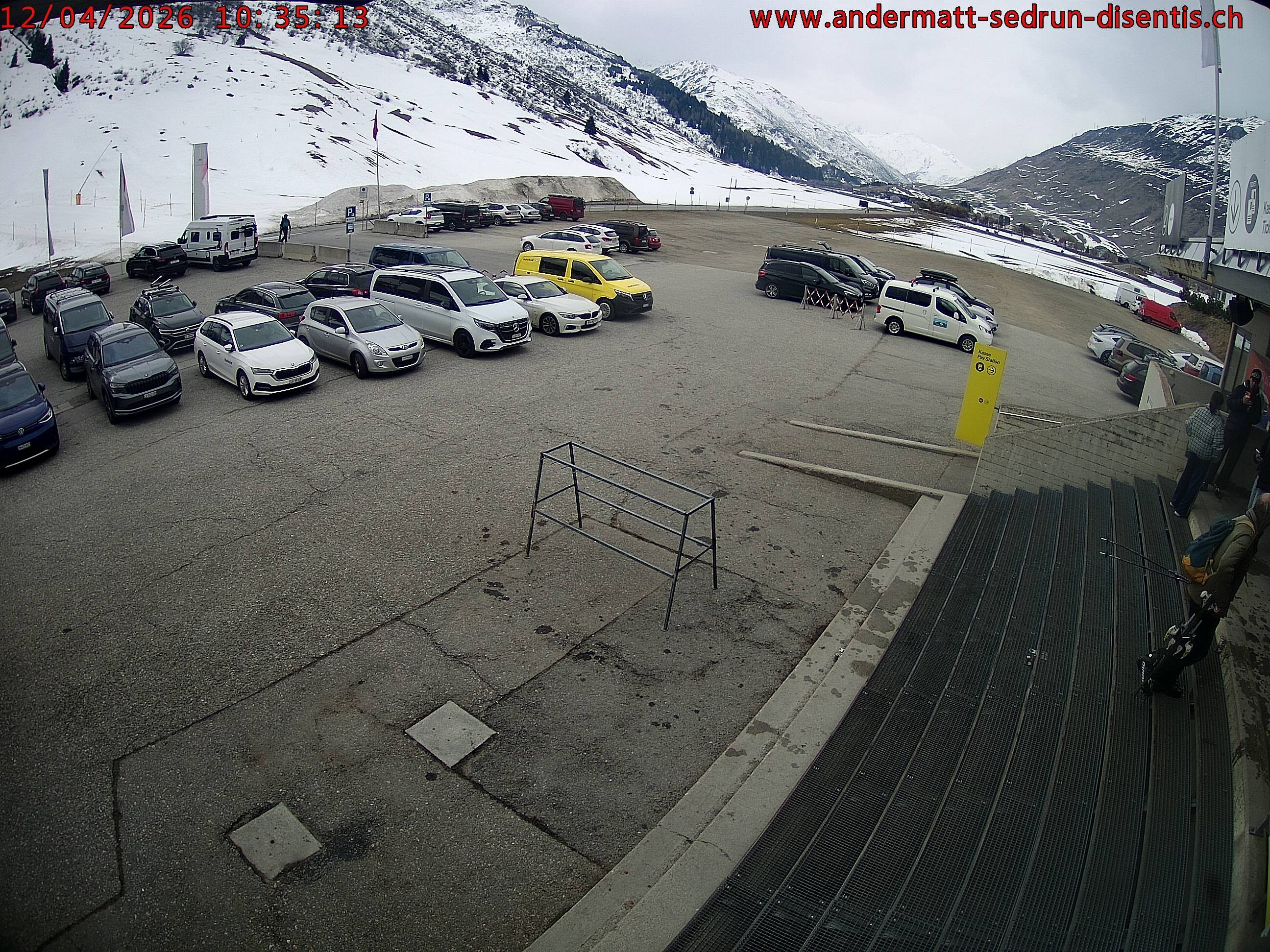 Archiviertes Webcam Bild: Andermatt: Parkplatz Gemsstockbahn am 12.04.2026 um 10:46 Uhr 10:00