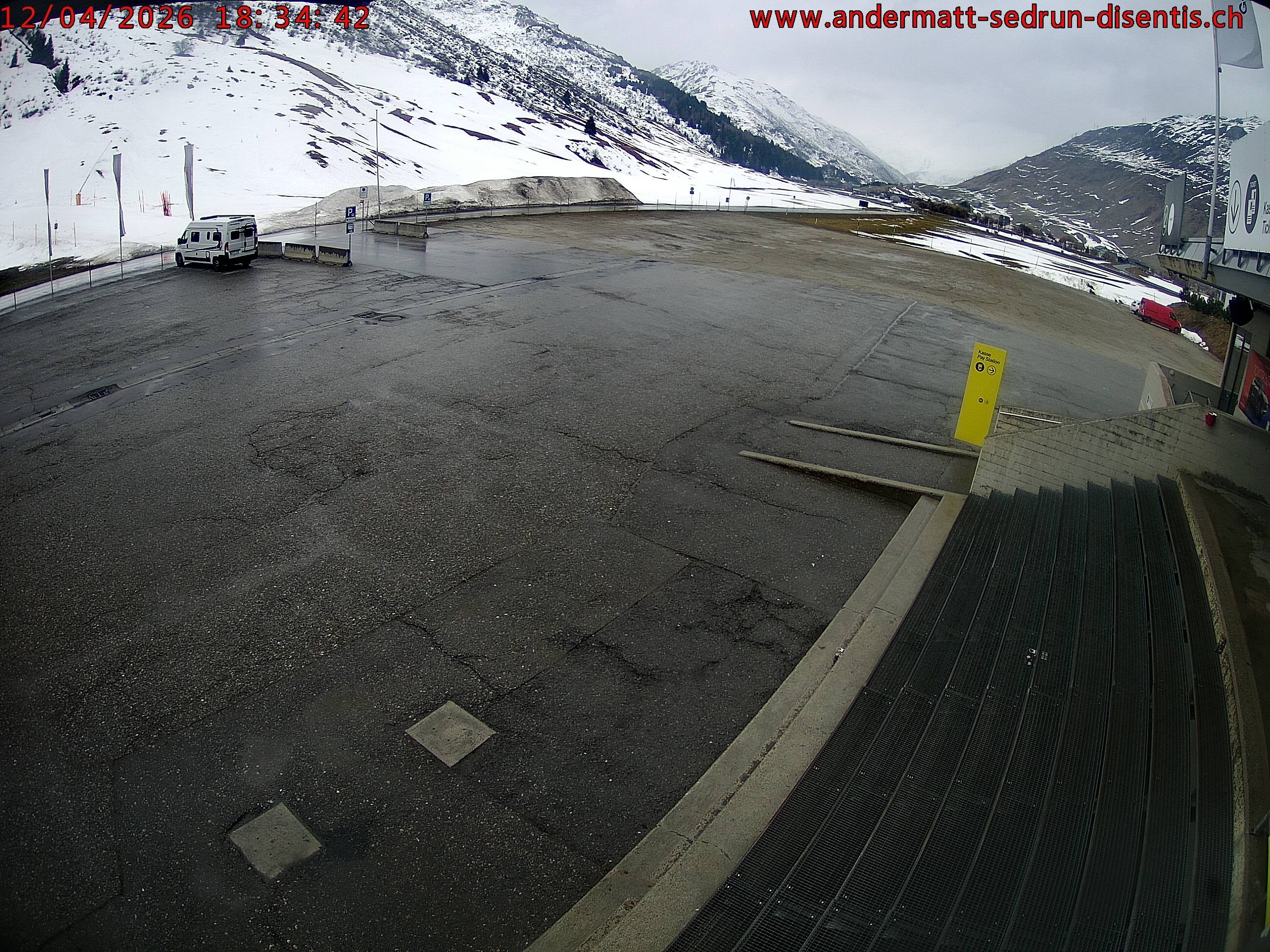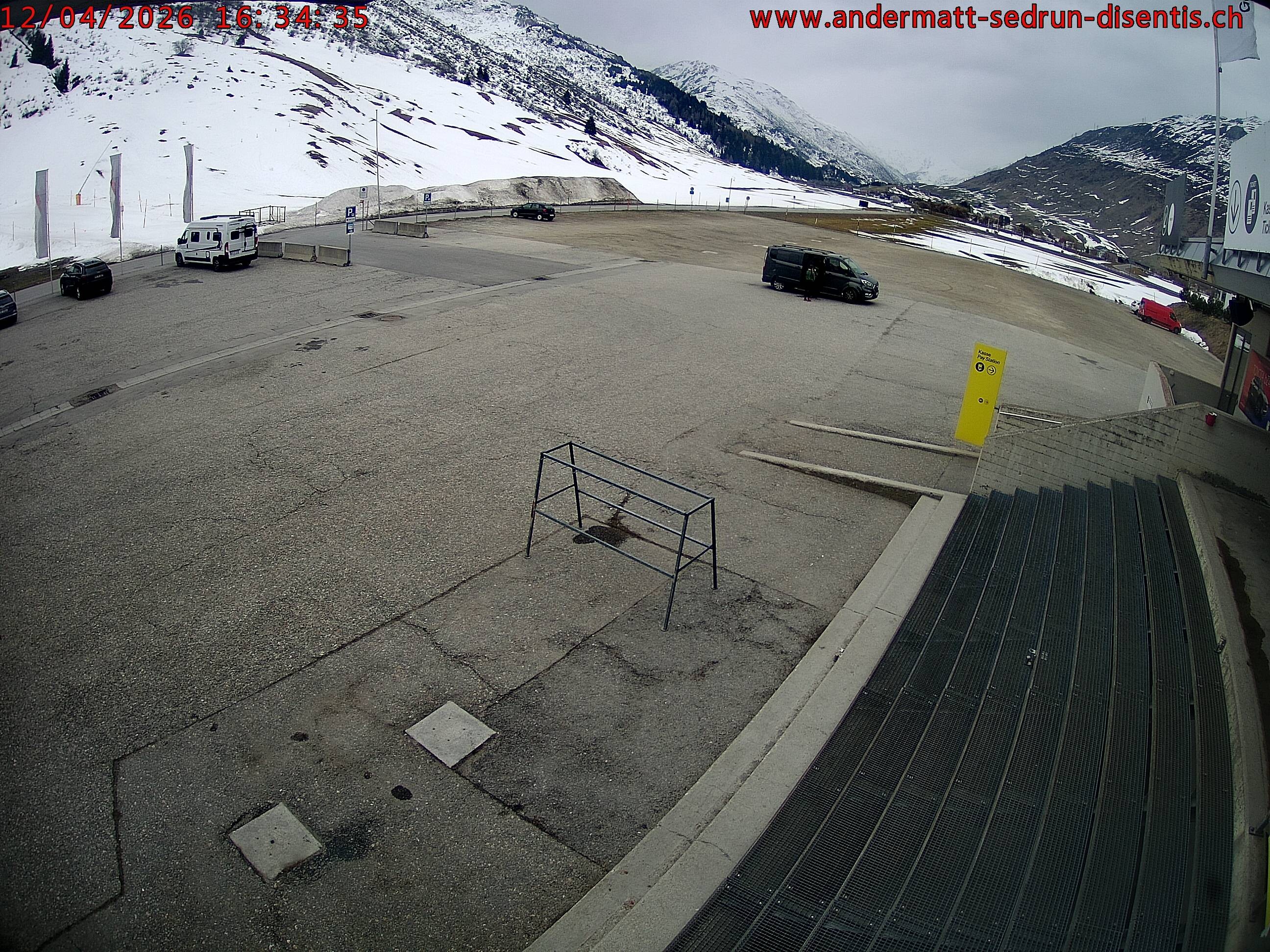 Archiviertes Webcam Bild: Andermatt: Parkplatz Gemsstockbahn am 12.04.2026 um 16:46 Uhr 16:00