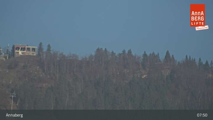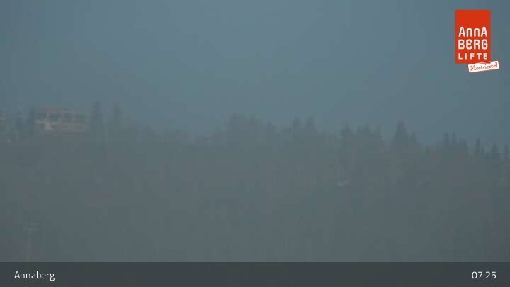 Blick auf die Abfahrt am Förderband und den Einstieg ins Skigebiet Annaberg in Niederösterreich.