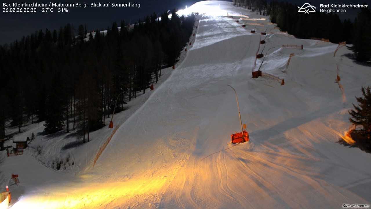 Die Webcam eröffnet dir im Winter die Sicht auf den Sonnenhang und den Maibrunn Berg. Im Sommer ist hier vom Tal aus das letzte Stück der Franz-Klammer-Weltcupabfahrt zu sehen.