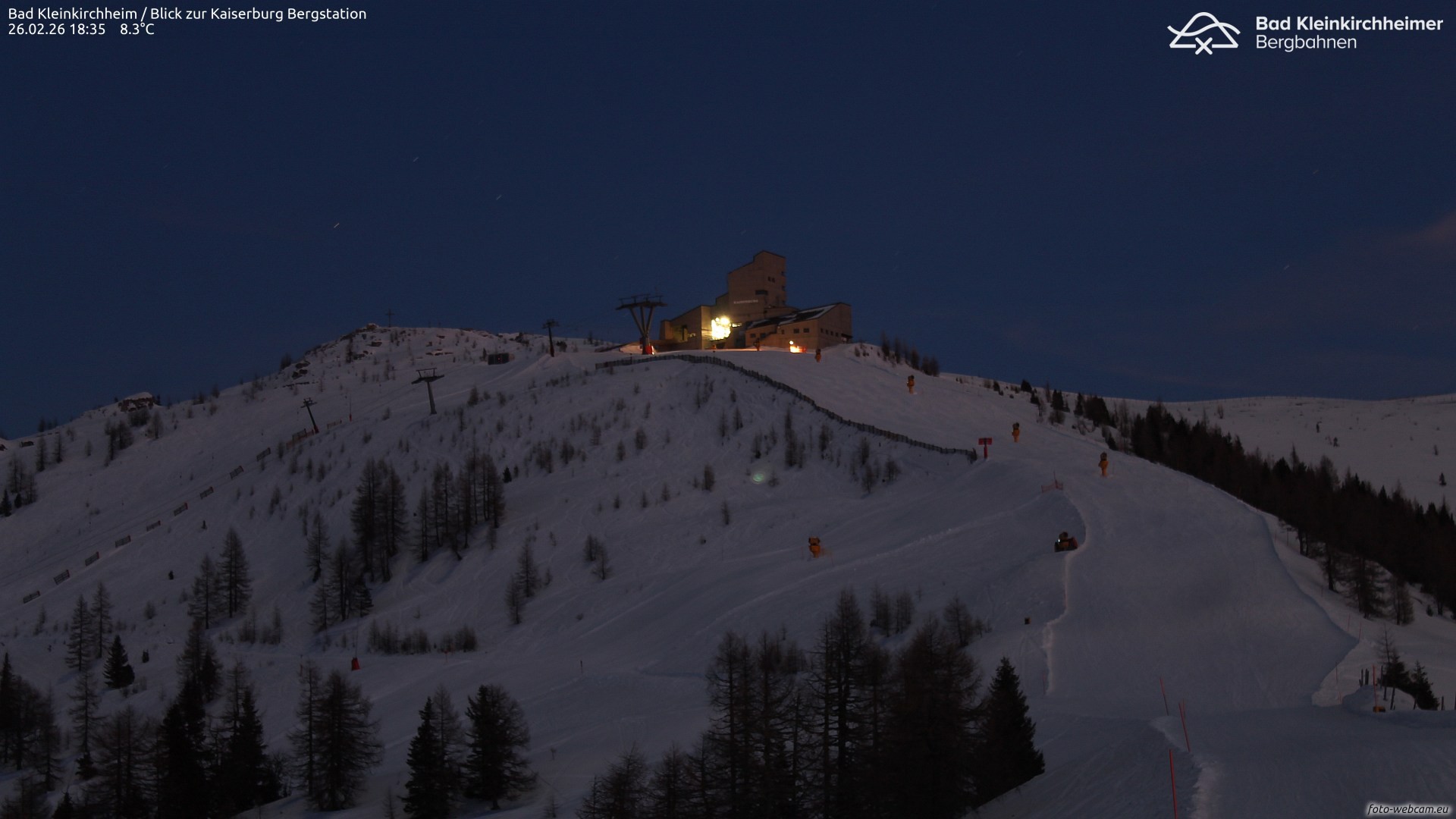 Die Webcam zeigt den Blick auf die Kaiserburg Bergstation im Skigebiet Bad Kleinkirchheim in den Kärntner Nockbergen