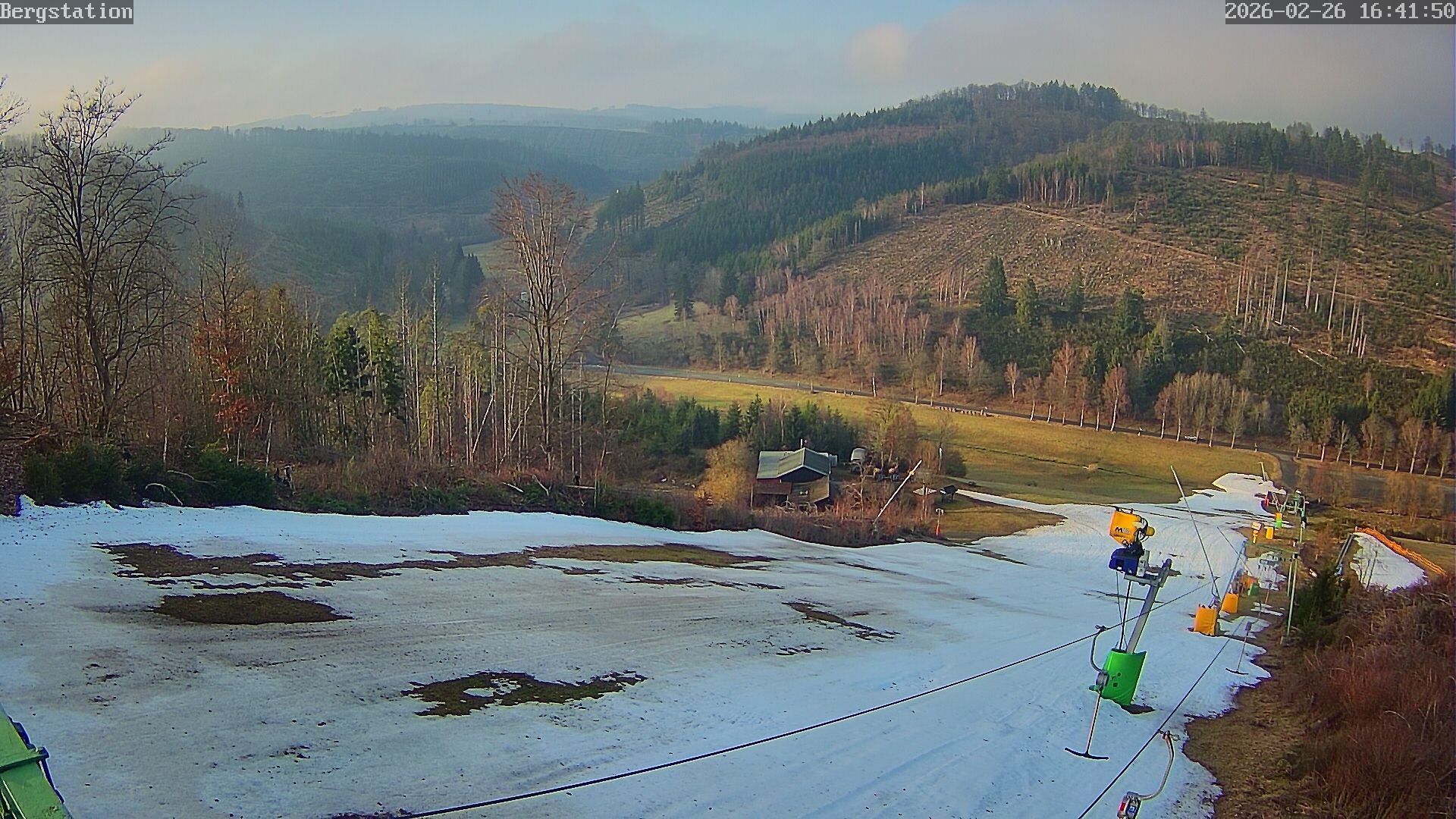 Blick von der Bergstation im Skigebiet Hesselbacher Gletscher im Kreis Siegen-Wittgenstein.