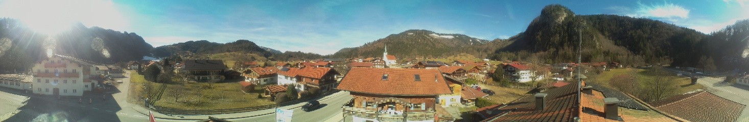 Blick vom Dach der Tourist-Info in Oberwössen über das Dorf im Chiemgau.