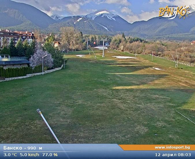 Archiviertes Webcam Bild: Skigebiet Bansko: Talstation am 12.04.2026 um 07:52 Uhr 08:00