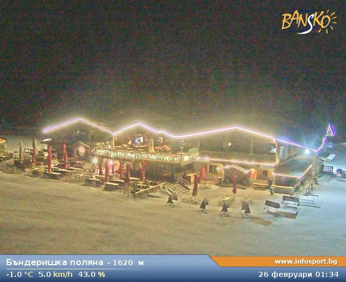 Archiviertes Webcam Bild: Bansko: Blick ins Skigebiet und auf den Weltcuphang am 26 Feb 2026 um 00:06 Uhr 00:00