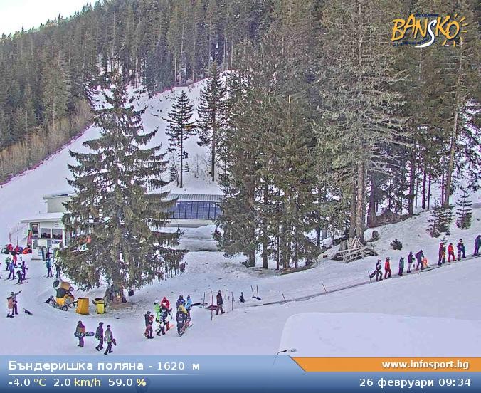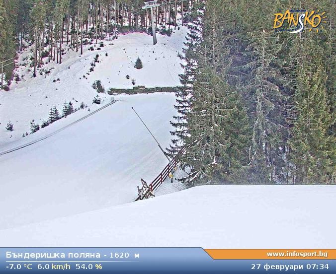 Archiviertes Webcam Bild: Bansko: Blick ins Skigebiet und auf den Weltcuphang am 26 Feb 2026 um 08:06 Uhr 08:00