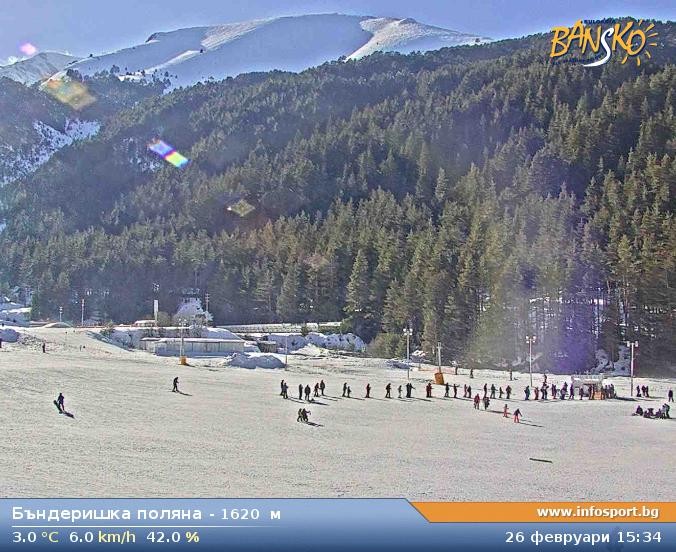 Archiviertes Webcam Bild: Bansko: Blick ins Skigebiet und auf den Weltcuphang am 26 Feb 2026 um 16:06 Uhr Aktuell