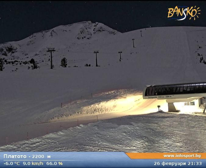 Archiviertes Webcam Bild: Skigebiet Bansko: Sessellift Plato am 26 Feb 2026 um 04:17 Uhr 04:00