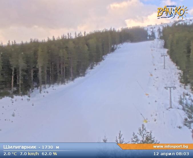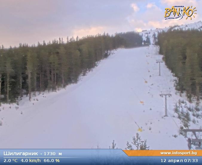 Archiviertes Webcam Bild: Skigebiet Bansko: Shiligarnika am 12.04.2026 um 07:46 Uhr 08:00