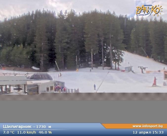 Archiviertes Webcam Bild: Skigebiet Bansko: Shiligarnika am 12.04.2026 um 14:46 Uhr 15:00