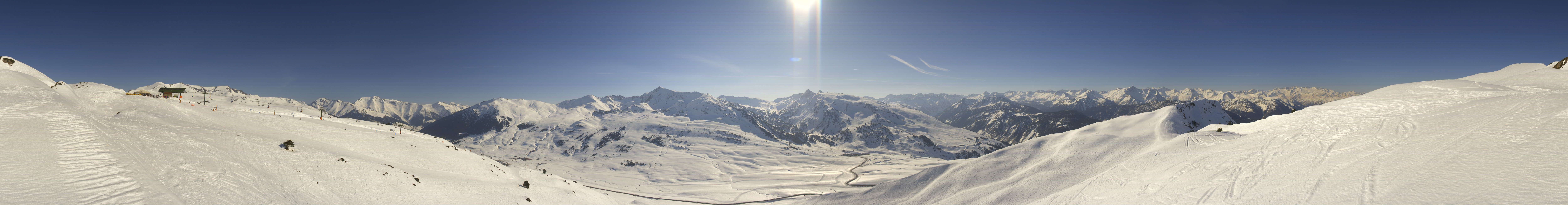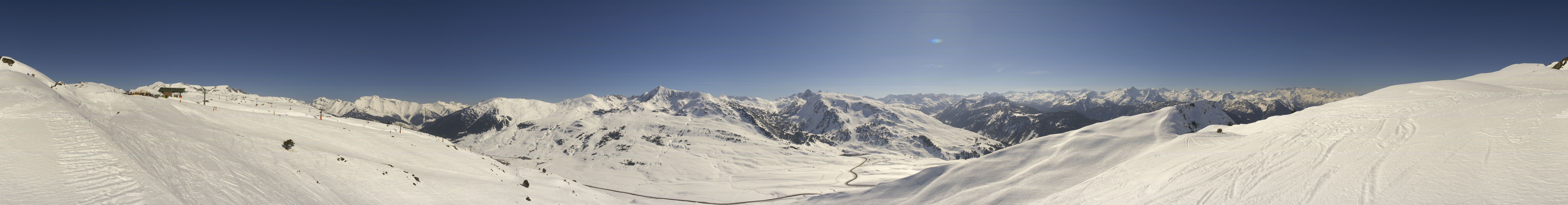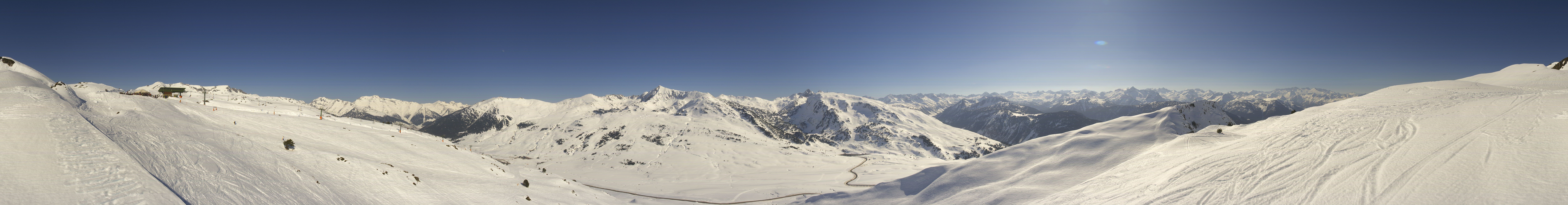 360-Grad-Blick auf das Skigebiet Baqueira-Blanhiblar in den spanischen Pyrenäen.