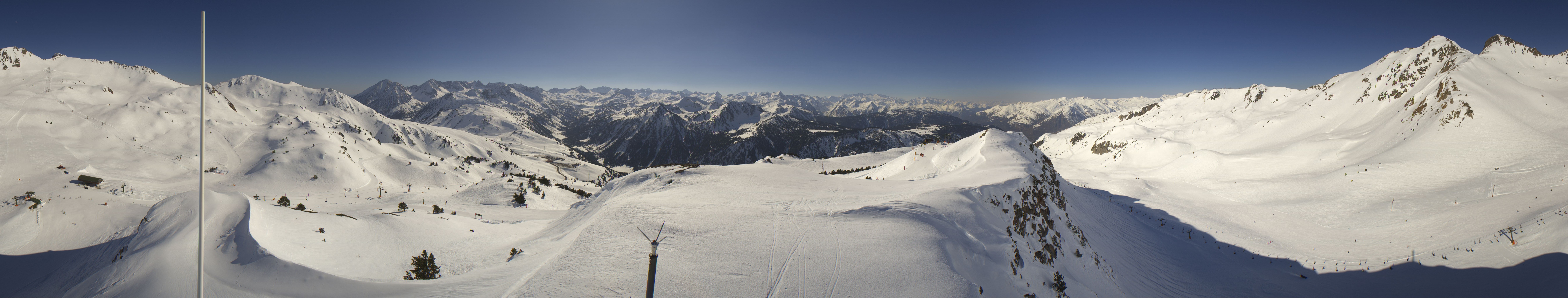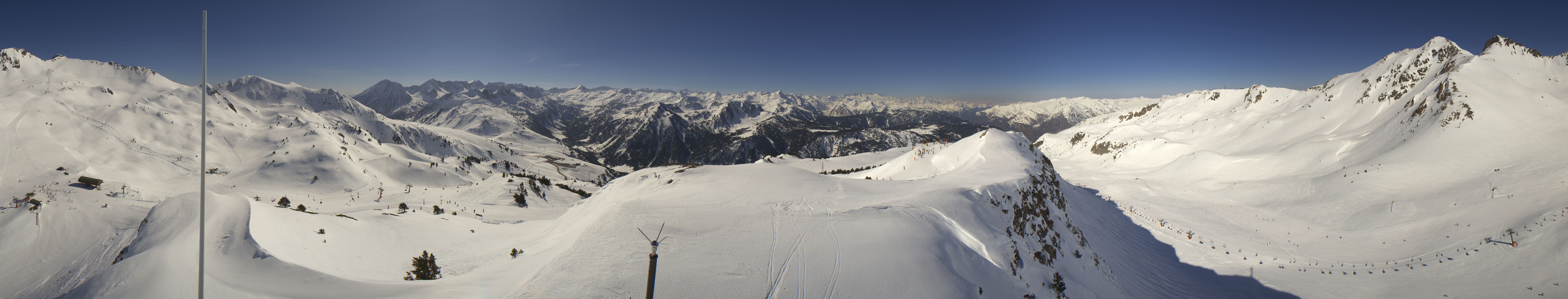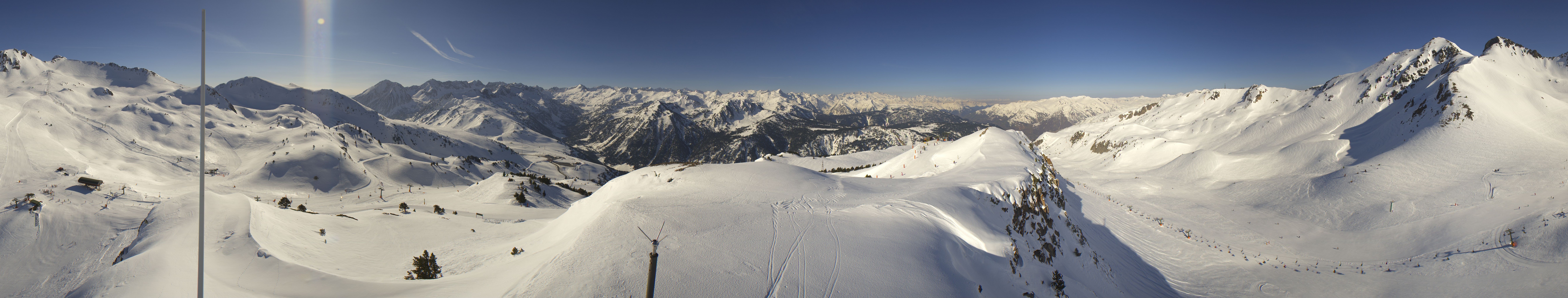 360-Grad-Blick auf das Skigebiet Baqueira und den Bereich um Teso in den spanischen Pyrenäen.